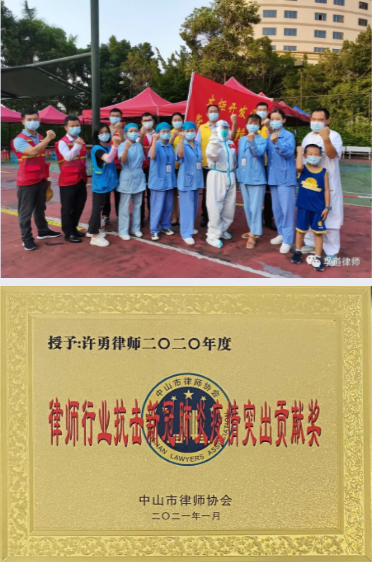 2020年,广东孚道律师事务所组织开展“抗疫先锋”专题活动,号召全所职工投身新冠疫情防控工作当中,其中包括捐款、协助各镇街的疫情防控工作等;2021年,根据疫情防控需要,在上级行政机关及律师行业党委的统一安排下,广东孚道律师事务所迅速组织工作小组奔赴市内各核酸检测点,协助当地工作人员、医护人员共同组织群众进行核酸检测。在疫情防控面前,律师更要体现社会责任担当,更要冲锋在前,听从指挥、服从安排,充分做好打好打赢疫情防控硬仗的思想准备和行动准备,用实际行动践行“我为群众做实事”,守好人民群众防控的安全线。广东孚道律师事务所党支部书记兼主任许勇律师荣获“2020年度律师行业抗击新冠疫情突出贡献奖”。