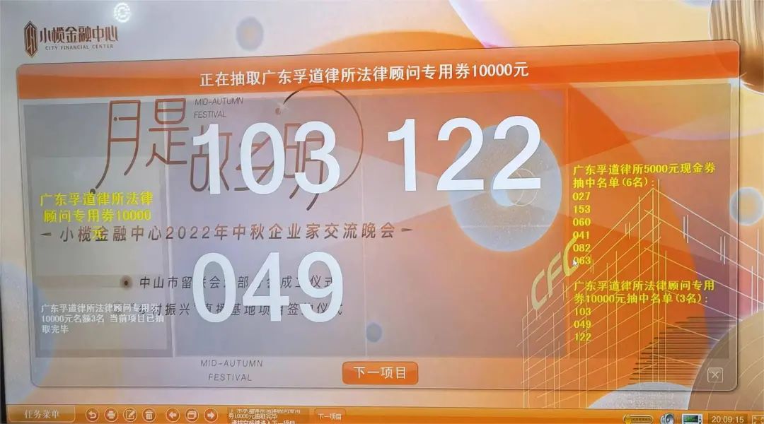 小榄金融中心中秋企业家交流晚会旨在为本地企业提供资源共享的机会,更好地发挥企业之间交流合作的桥梁纽带作用。孚道律所为本次晚会赞助了6万元“暖企”法律服务现金券(榄企专属),用于本地企业采购孚道相应的法律服务,为本地企业在法治的轨道上聚力发展保驾护航。