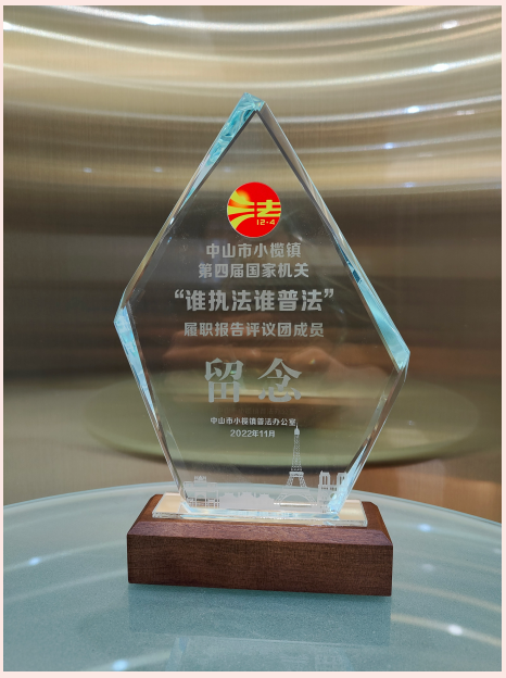 2022年12月9日,中山市小榄镇第四届国家机关“谁执法谁普法”履职报告评议会在小榄镇政府举行,小榄镇25个普法成员单位参加会议,镇党委副书记弓伟出席会议并讲话。参加会议的还有小榄镇相关领导、镇普法领导小组成员单位分管领导、镇普法办公室领导及工作人员、评审团成员。孚道合伙人肖静律师作为律师代表以评议团成员的身份参加了此次会议。
